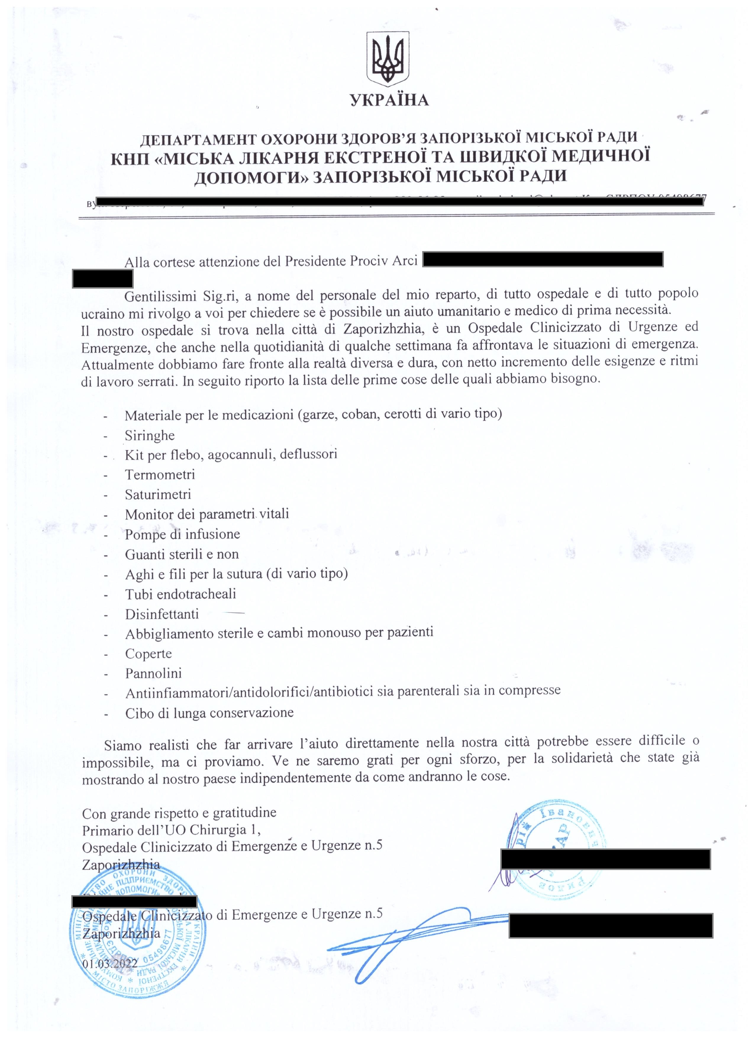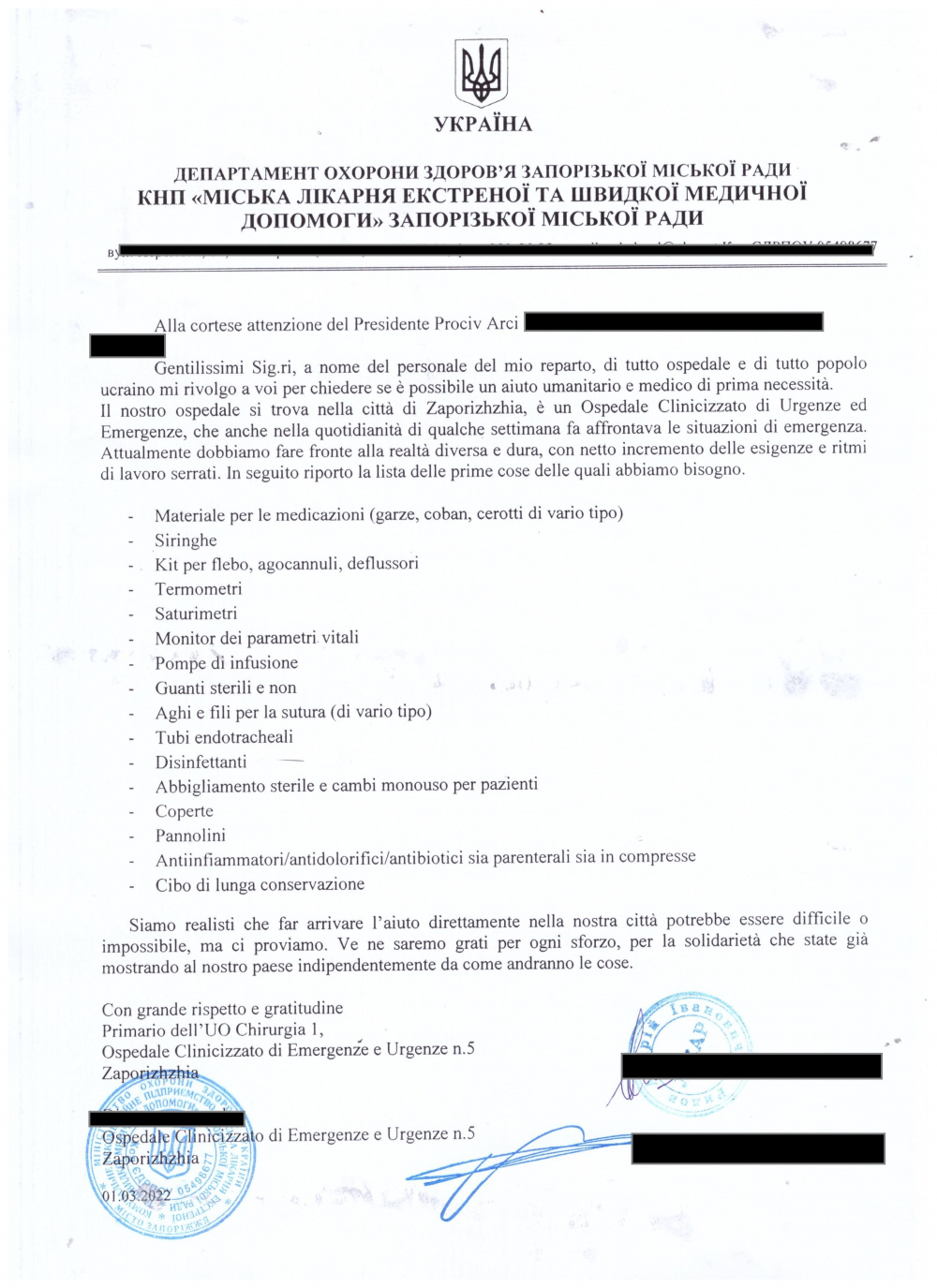 La raccolta di farmaci, dispositivi sanitari,... che consegneremo all'”Ospedale Clinicizzato di Emergenze-Urgenze” è una missione di solidarietà nei confronti di medici e soccorritori impegnati nel conflitto in Ucraina.